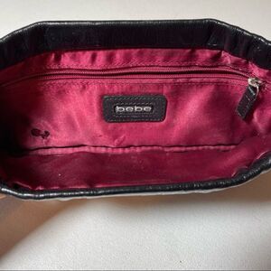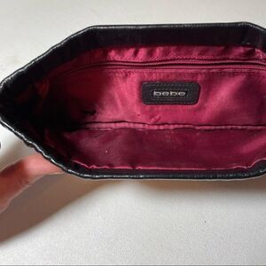 Adorable vintage bebe clutch, just the right size for a night out! - In good Preowned Condition -Outside is perfect- Small burn mark on inside. No missing Rhinestones - Pull to open and it snaps open - push shut