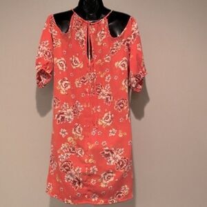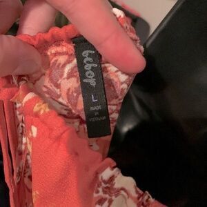 A fun, flowy cold shoulder floral top from bebop. Size large. Long and beautiful! Excellent condition