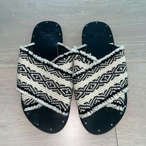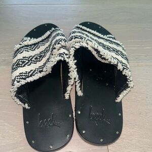 beek Mamu Slide Sandals Black and White US 5