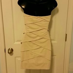 Very elegant dress. Worn once to christmas party. Looks brand new. Size: small. Beige color. 95% Rayon/5% Spandex.