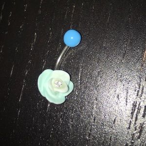 blue flower belly button ring stainless steel