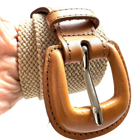 belt J. CREW XS/S tan leather stretch 2" wide 25"-29-30" waist covered buckle