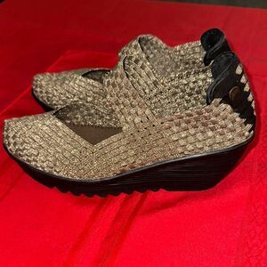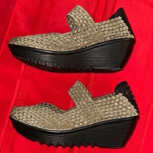bernie mev. Gold and Black Woven Wedges Size 8.5/9 NOT A SIZE 10 as marked.