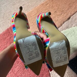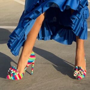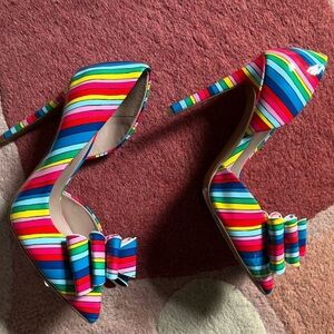 Betsey Johnson Stripes Bow Prince Kaison Pumps. Colorful Rainbow Multicolor patent Heels. True to size 7