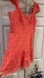 Chic red sleeveless dress featuring a delicate white pattern. Perfect for any occasion.EUC vibrant, coral, color, flirty, and feminine cap ruffle sleeves, corset front