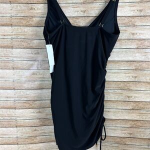 beyond control black one piece swimsuit V-Neck Adjustable Swim dress Size 12NWT
