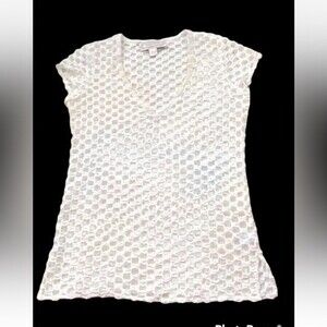beyond vintage silk polyester mesh top see through white size small short sleeve