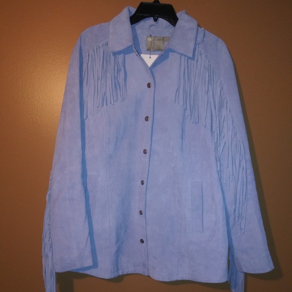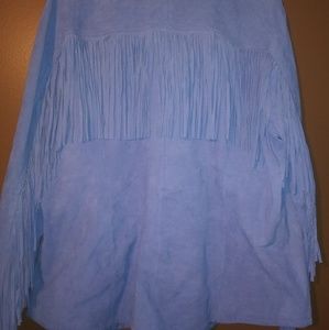 Baby blue soft Leather /fringes on the back and front