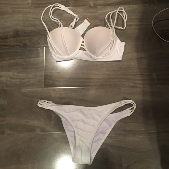 a white seashell bra cupped strappy top with a matching bottom