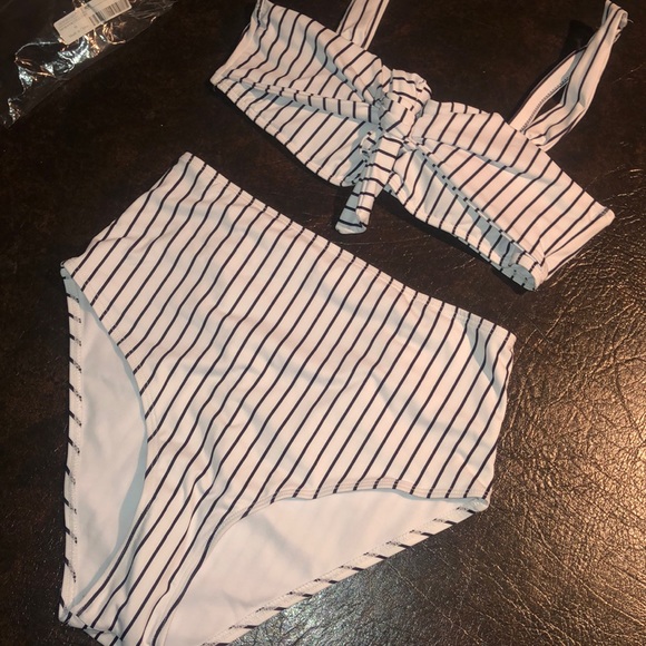 Brand New. Never worn. high waisted black & white striped bikini!