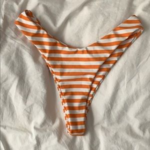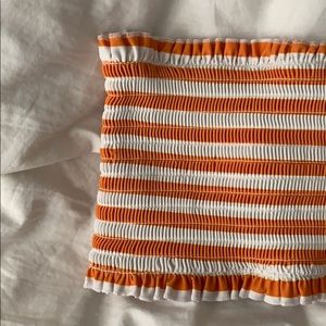 Bandeau top with padding Thong bottom Orange and white Never worn, no flaws Size S No tags I don’t recall the brand