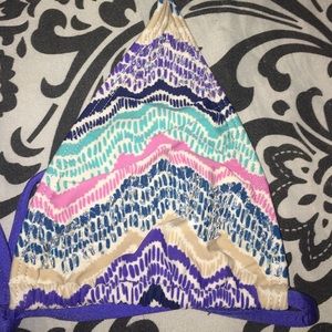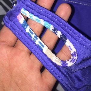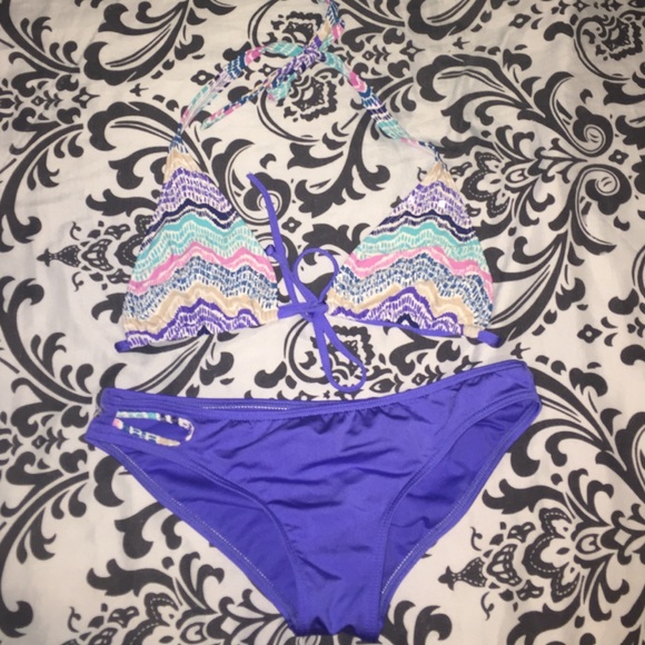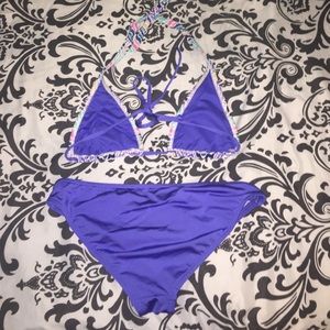 top and bottom bikini set. top has super cute beaded detailing, and bottom has cute cutout on the hip. worn once. no trades