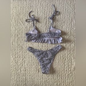 SHEIN preppy bikini set tie shoulders cheeky bottoms worn only once polka dot/ cow print/ Dalmatian no flaws non adjustable true to size S removable padding