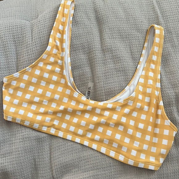 yellow plaid square neck bikini top size m-l
