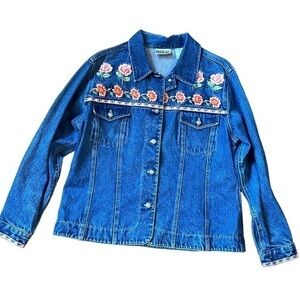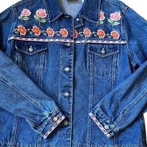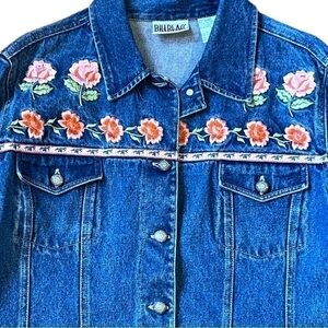 bill Blass denim jacket, size M, with embroidery and grosgrain ribbon