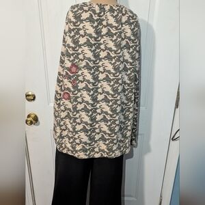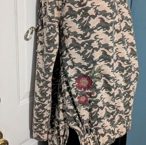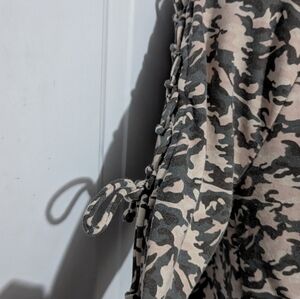 Stylish off-shoulder top with a chic camouflage pattern. Perfect for casual outings. Embrace comfort and style with this versatile piece.