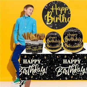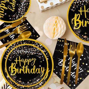 birthday plates and napkins party supplies - (Total 169pcs) balck gold birthday