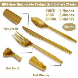 🧿🎈 SERVES 24 GUESTS - Our black and gold plate party supplies include 24 9" dinner plates paper, 24 7" paper dessert plates, 24 9oz cups, 24 Napkins, 24 knives, 24 forks, 24 spoons, 1 tablecloth. birthday cutlery is made of high-quality paper. You can be confident in using it.