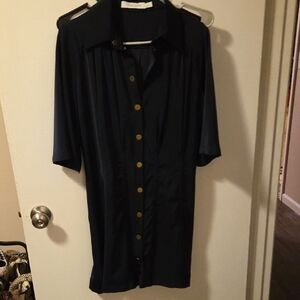 bishop + young Gold and Black Buttoned Dress with Notched Collar