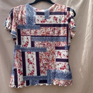 Women's Large V-Neck, Ruffled split sleeve & bottom.