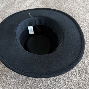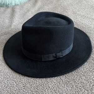 Elevate any look with this sleek 100% wool fedora. Structured crown, wide brim, and grosgrain ribbon band make it a versatile piece-whether styled with jeans and a sweater or dressed up for a night out.