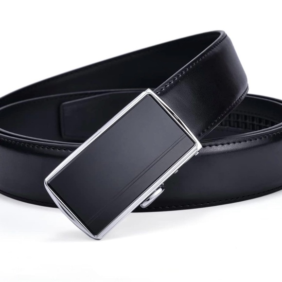 Buckle belt: the buckle is slide automatic, just insert the belt through the buckle and it will click the lever on the side and it will release. Easy to wear, suitable for man