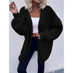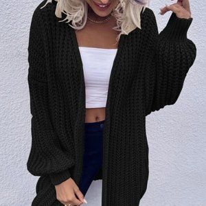 black Chunky Knit Open front comfy cozy sweater Cardigan