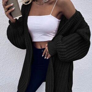 black Chunky Knit Open front comfy cozy sweater Cardigan
