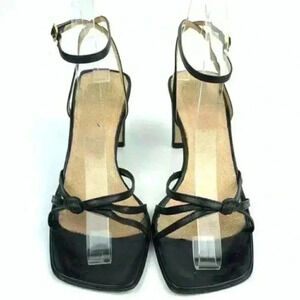 black Italian leather heels size 37 strappy party