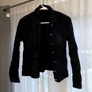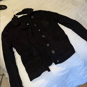 Black cotton jacket with big buttons.