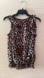This sleeveless tank top features a classic crew neck and a fitted design, making it a stylish choice for any occasion. The top is primarily dark brown, offering a versatile and chic look.