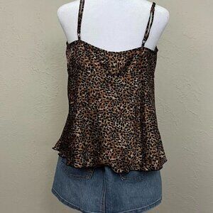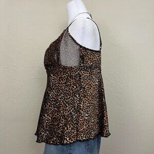 black and brown leopard print vintage 90s cami tank top with sheer bust