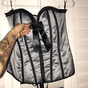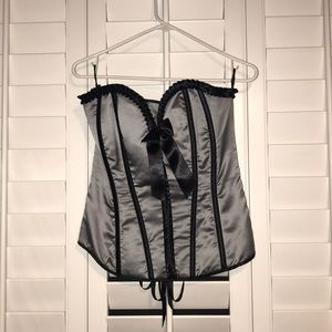worn once, black and gray corset. could be used for a costume or cocktail waitress