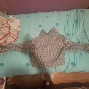 heavy material, black and white, extremely good quality and is a beautiful touch to a simple blouse.