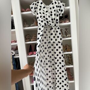 black and white polka dot puff sleeve wrap long blouse Size XS
