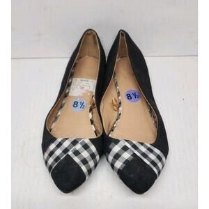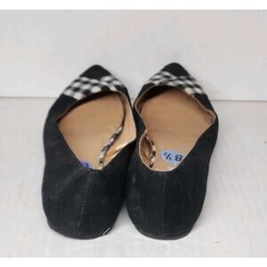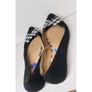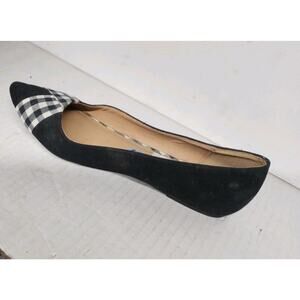 black ballet flats W/ white plaid toe Sz 8.5 Slip On Pointed Toe Suede ROSS