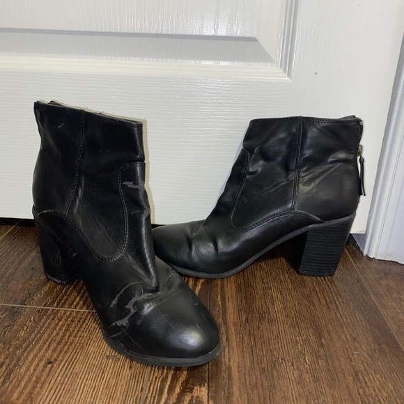 black heeled boots. One of them has creasing from storage but other than that they r super cute!