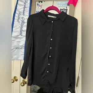 super soft black dress top. feels like faux silk, never worn, just tired on. very flattering. I didn’t have anything to pair it with