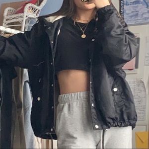 black button down jacket with soft inside and hood