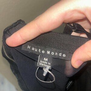 - mesh material and padded cups, zips up in the back with adjustable straps