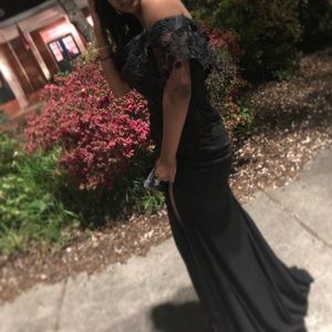 only worn once , slit on the side, zipper in the back , stretchy material fits sizes 4-8
