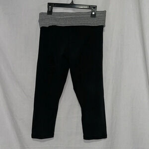 black gray & blue Victoria's Secret PINK yoga capris size small. Fold over waist with logo on left side