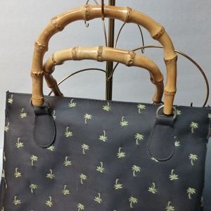 black green palm tree purse with bamboo handles by Sunny . Strong