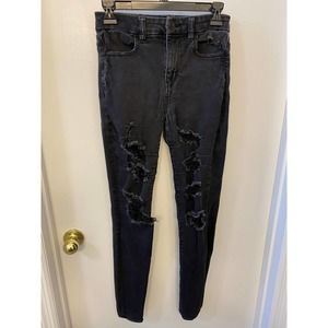 black jeans American Eagle size 4 Long super stretch ripped A51b