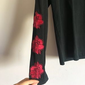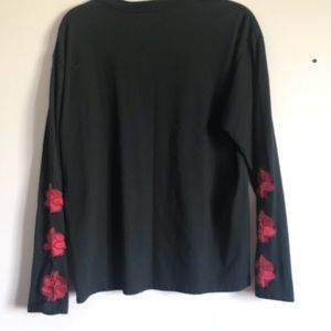 from PacSun all black but has 3 roses on each sleeve. never worn but no tags. it is a men’s small but it fits a woman medium with a little over size to it