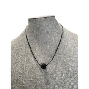 Cute lightweight necklace industrial minimalist goth look Upcycled charm bead in good condition on new black rope necklace