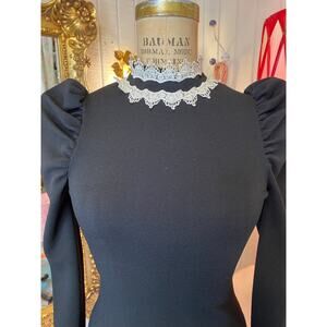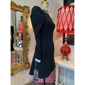 black mod puff sleeve gothic mini dress xs long sleeve flared wednesday lace