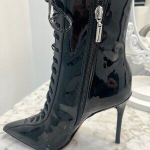 SCHUTZ BLACK PATENT HIGH HEEL BOOTIES POINTY TOE LACE UP LEATHER SOLE BRAND NEW
