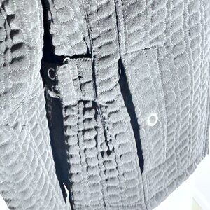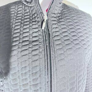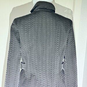 Stay warm and stylish in this chic Gallery black quilted jacket. Made for both comfort and function, it features a textured quilted exterior with a sleek zip-up front and adjustable belted waist for a flattering silhouette. The lightweight design makes it perfect for layering on brisk days without added bulk. Great for city strolls, everyday wear, or travel.