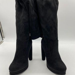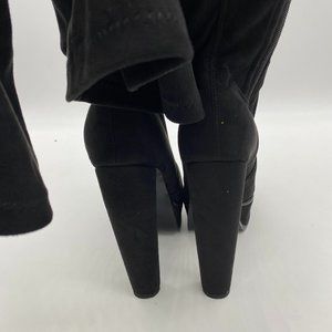 black round toe suede platform over the knee boots chunky heels